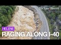 Watch the raging Pigeon River wash away I-40 after Helene